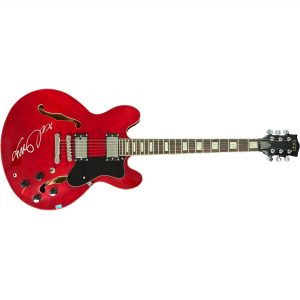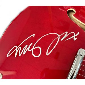• Full size cherry red electric guitar, like used in Back to the Future at the Enchantment Under The Sea dance, hand signed by Michael J. Fox (Marty McFly)