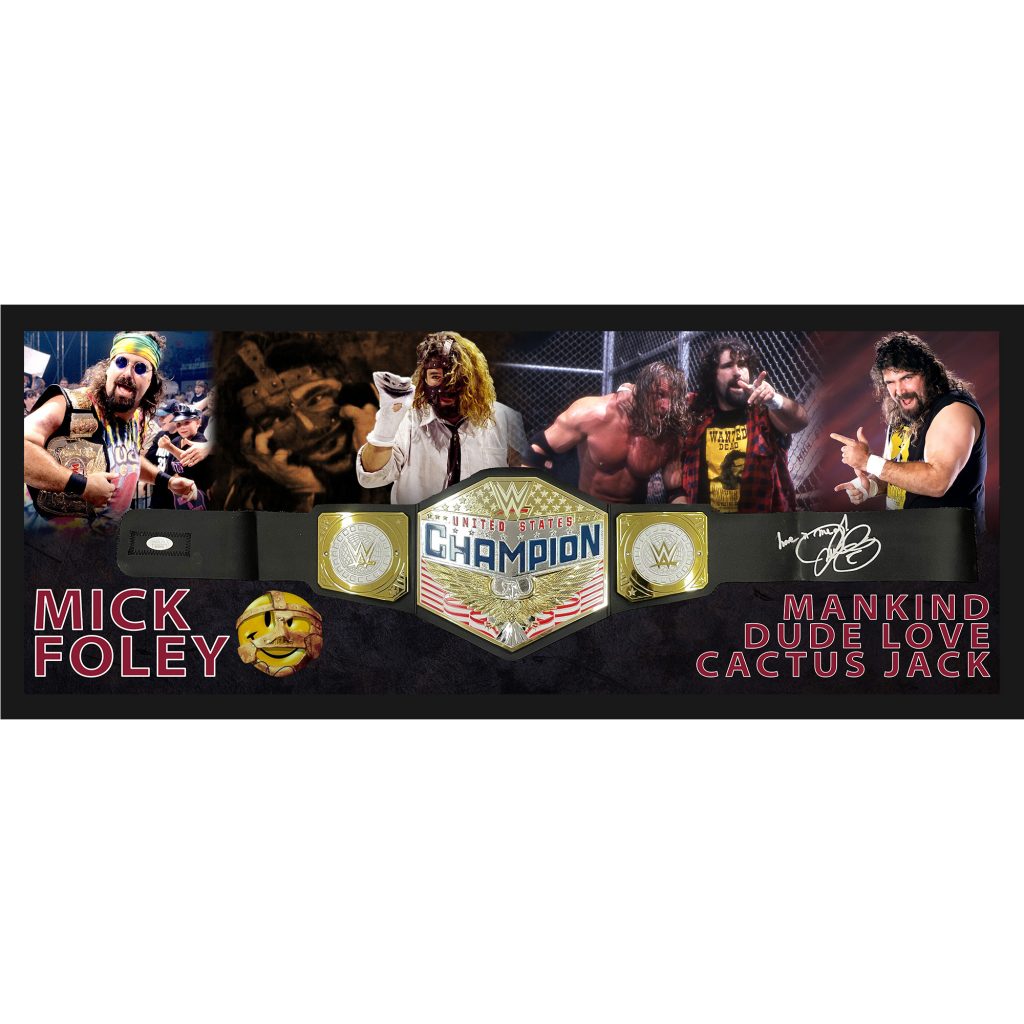 - Replica WWE United States Championship Belt hand signed by Mick Foley (Cactus Jack, Mankind, Dude Love)