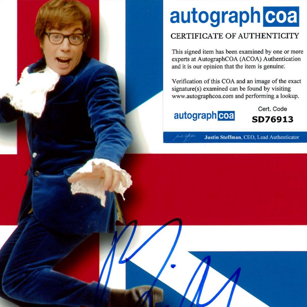 • High quality 8×10 photograph from Austin Powers hand singed by Mike Myers (Austin Powers) and an 11×17 photograph hand singed by Heather Graham (Felicity Shagwell)