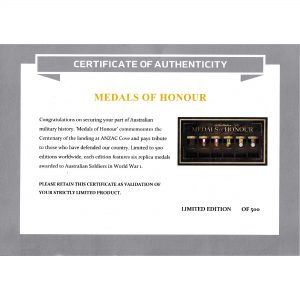 - Featuring six replica medals awarded to Australians Soldiers in World War I
