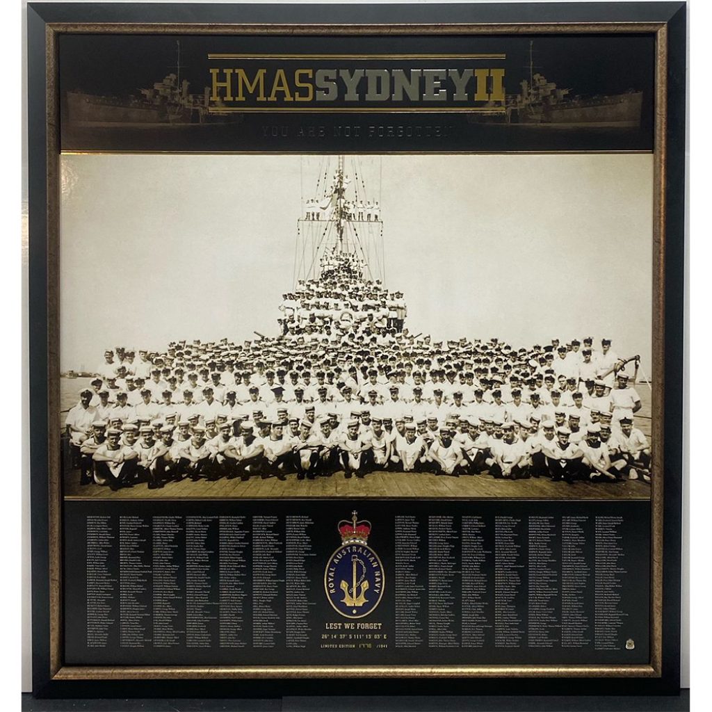 This Fantastic Limited Edition print is the 6th in the edition of Military prints. The print pays tribute to the 645 brave officers and men who lost their lives on the 19th November 1941. All 645 names appear on the print which has been varnished, UV applied, watermarked, gold & gun metal grey foiled and embossed, a true work of art.