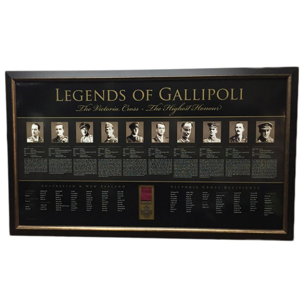 - Legends Of Gallipoli Print featuring a replica Victoria Cross mounted on the print