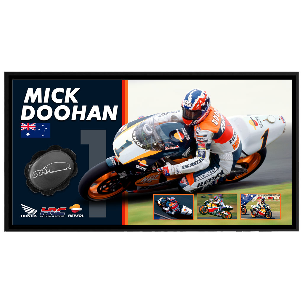 Moto GP – Mick Doohan Signed & Framed Knee Slider