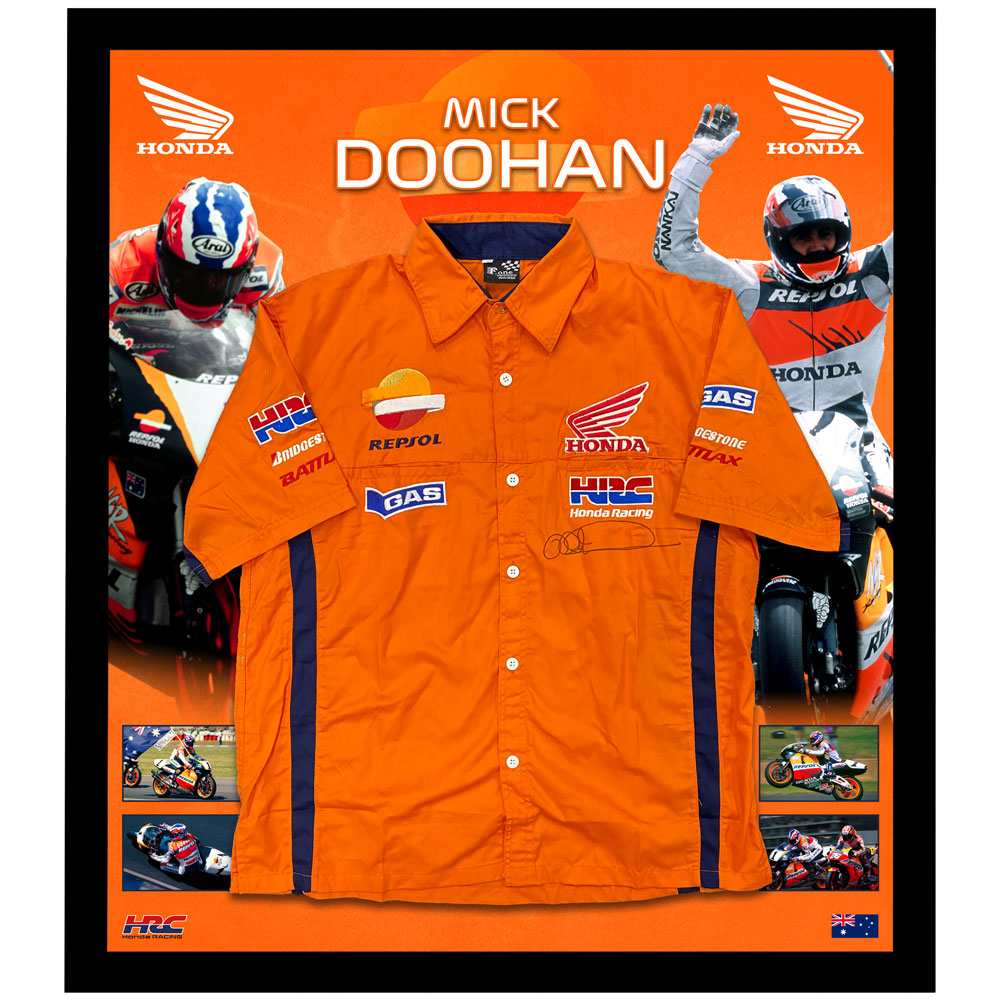 Moto GP – Mick Doohan Signed & Framed Motor Racing Pit Shirt