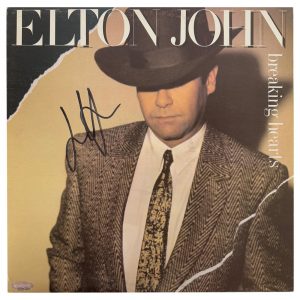 - Full size Breaking Hearts vinyl album cover hand signed by Elton John