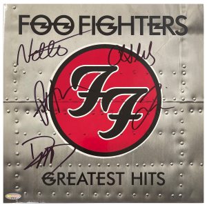- Full size Greatest Hits vinyl album cover hand signed by Dave Grohl, Taylor Hawkins, Nate Mendel, Pat Smear & Chris Shiflett