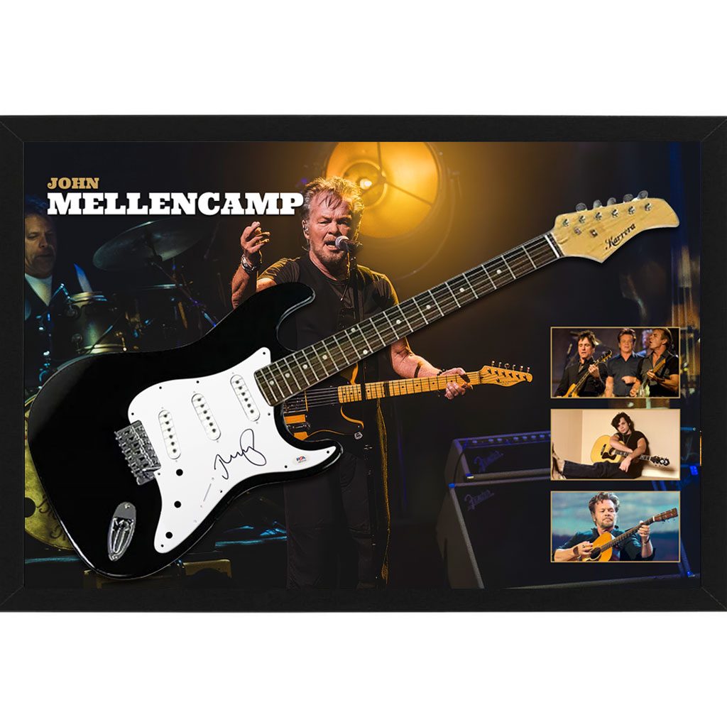 Music – JOHN MELLENCAMP Hand Signed & Framed Full Size Guitar with Backdrop (PSA Hologram)