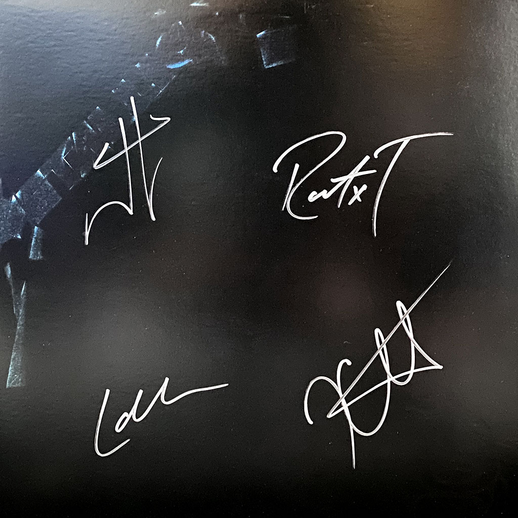 • Full size Metallica The Black Album vinyl album hand signed by James Hetfield, Lars Ulrich, Robert Trujillo & Kirk Hammett