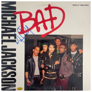 - Full size Bad Special 12″ Single Mixes vinyl album cover hand signed by Michael Jackson