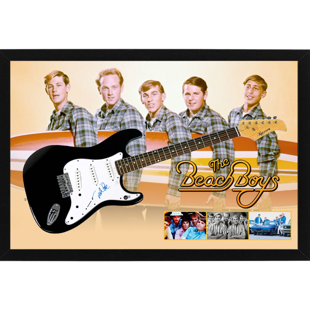 Music – Mike Love “The Beach Boys” Hand Signed & Framed Full size Guitar with Custom Backdrop (Beckett Hologram)