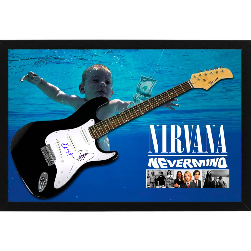 Music – Nirvana Signed & Framed Guitar with Custom Backdrop