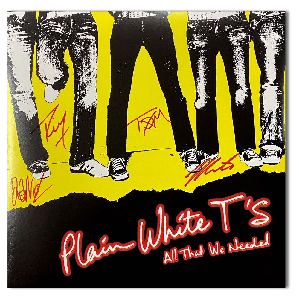 • Plain White T’s All That We Needed Vinyl Album signed by Tom Higgenson, Tim Lopez, Mike Retondo, and De’Mar Hamilton