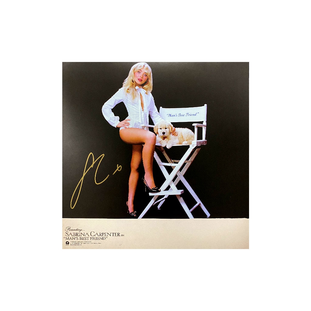 - Full size Man’s Best Friend Vinyl Album framed with 11″ x 11″ print hand signed by Sabrina Carpenter