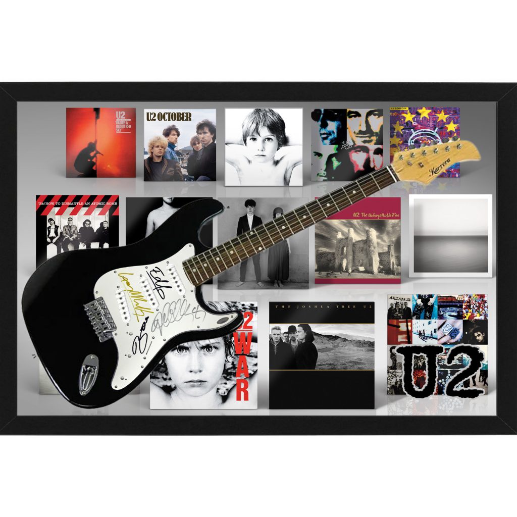 Music – U2 Hand Signed & Framed Full size Guitar with Custom Backdrop