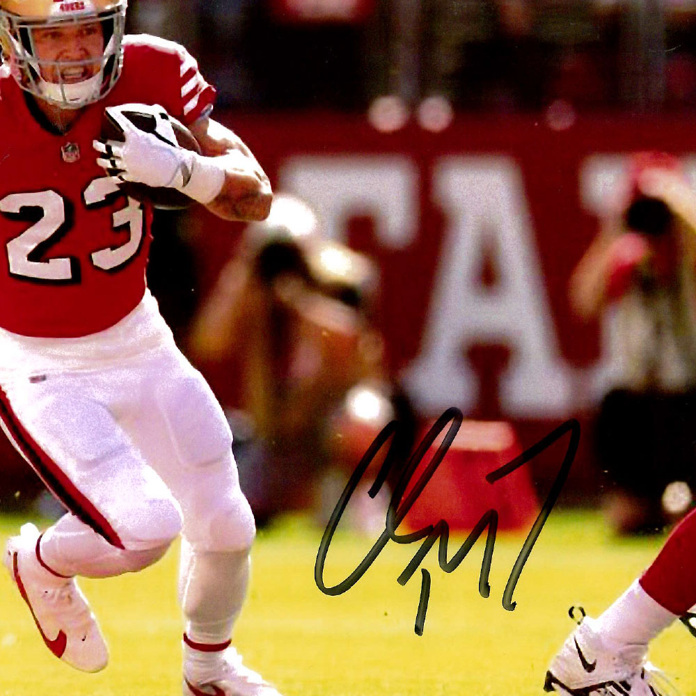 - High quality 8 x 10 photograph, hand signed by Christian McCaffrey (San Francisco 49ers), mounted into a deluxe display