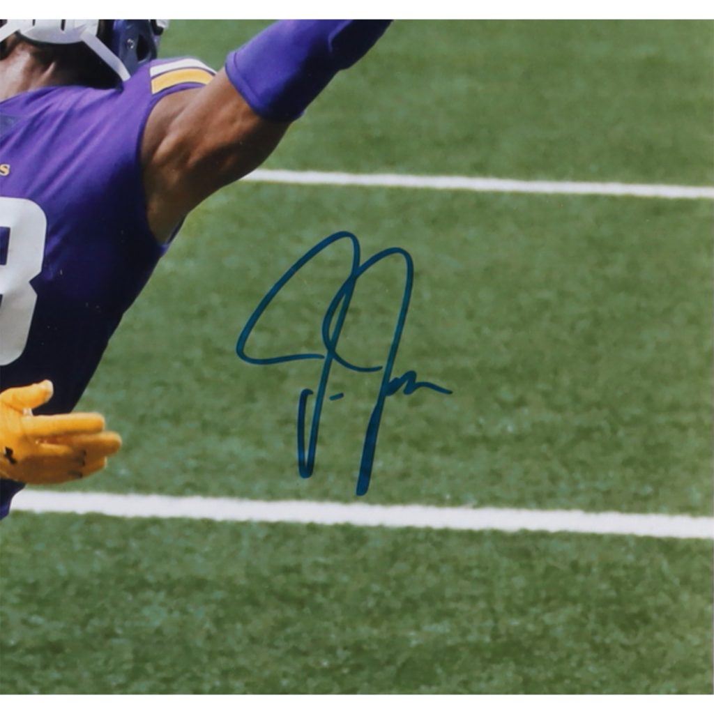 - High quality 16×20 Photograph, personally signed by Justin Jefferson, mounted into a deluxe display