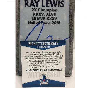 • 15″ Replica Lombardi Football Championship Trophy hand signed by Ray Lewis