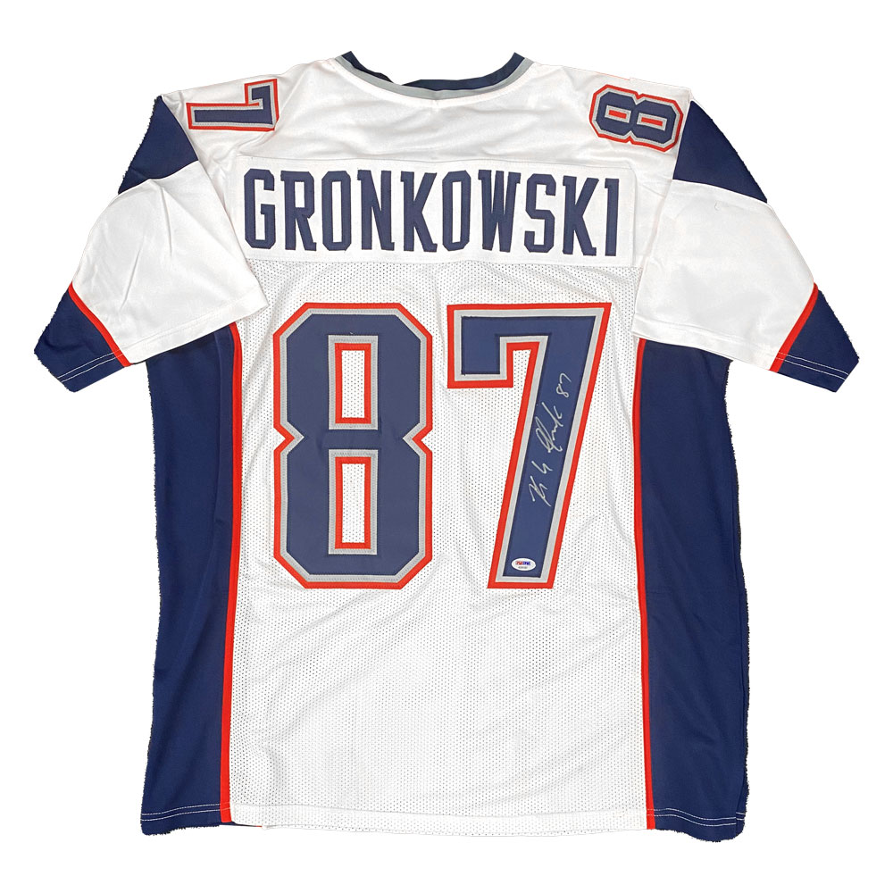 • White custom jersey hand signed by Patriots Superstar, Rob Gronkowski