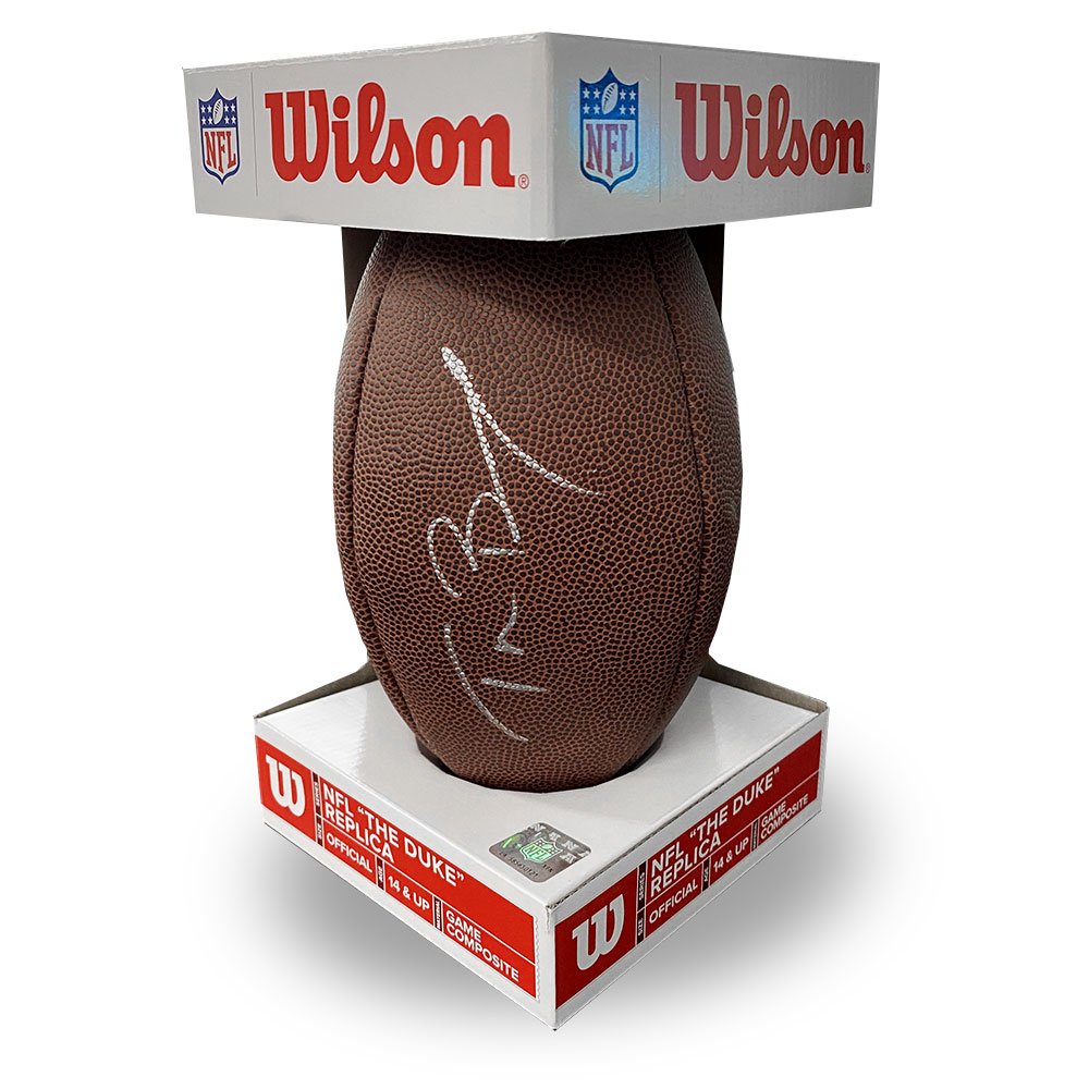 - Please note – Signed football pictured is the exact signed football you will receive. Football comes packaged in original Wilson cardboard box. A display case can be purchased separately.