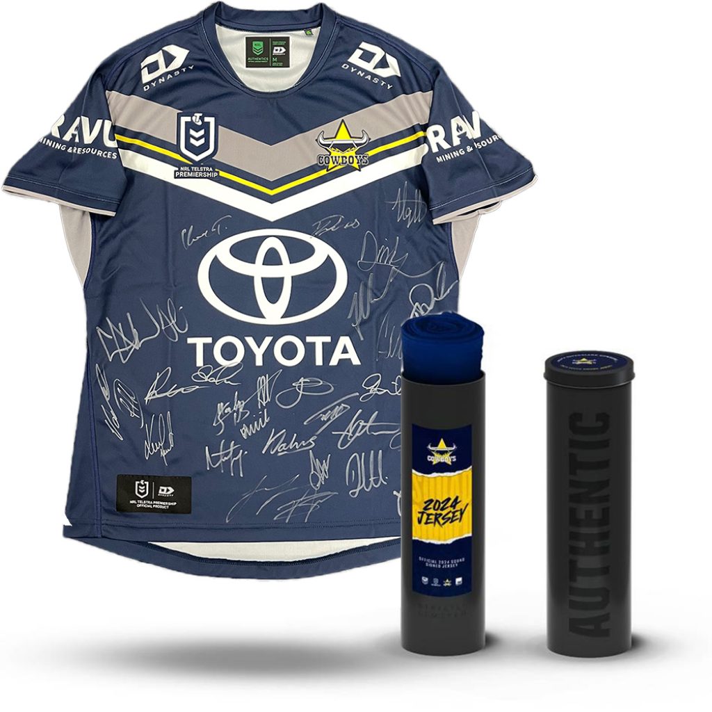 - Your officially licensed Dynasty 2024 North Queensland Cowboys Jersey comes personally signed by the playing squad* for the 2024 NRL Telstra Premiership