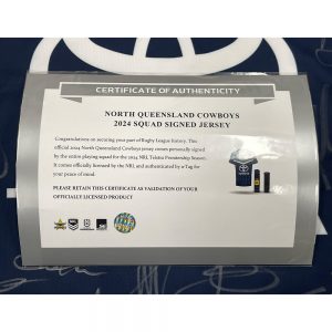 Personally signed by the North Queensland playing squad* for the 2024 NRL Telstra Premiership, each jersey comes officially licensed and endorsed by the NRL. It is a must-have for all Cowboys fans and collectors alike – don’t miss out, secure yours before this limited stock runs out!