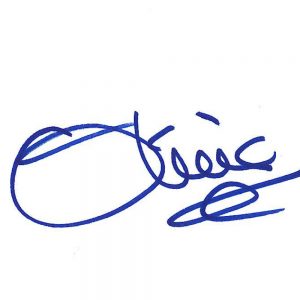 - Approx. 150mm x 40mm signature card, hand signed by Olivia Newton-John (Sandy Olsson)