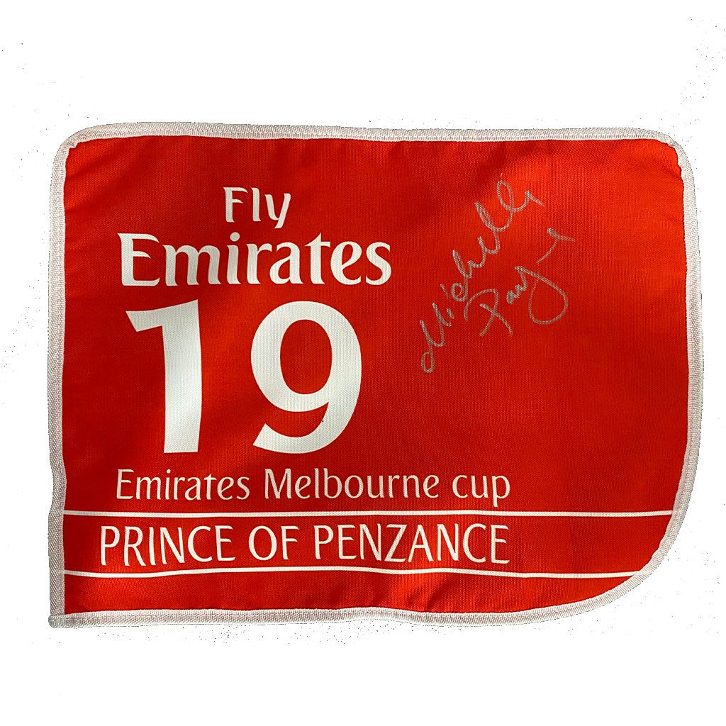 - Replica Mini Prince of Penzance Saddlecloth (Approx. 410mm x 310mm) hand signed by Michelle Payne (Jockey)