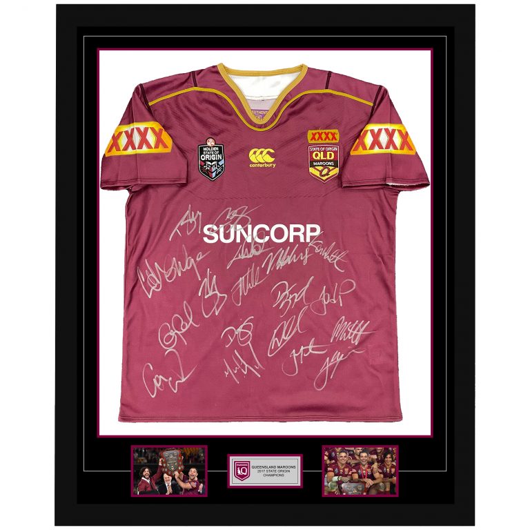 Queensland Maroons – 2017 Champions Team Signed & Framed Jersey