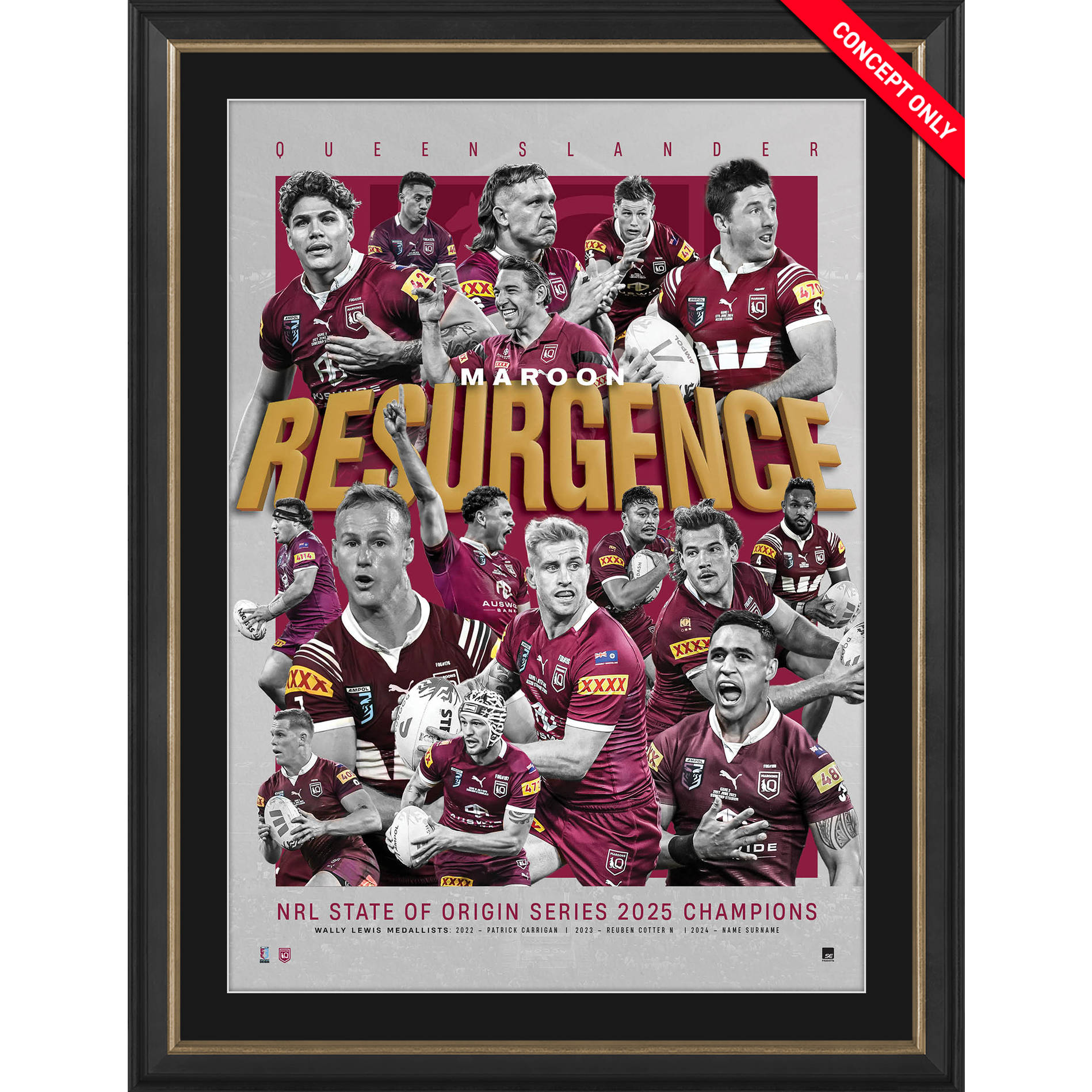 - Magnificent display features action and celebration imagery from across the Maroons’ three consecutive series triumphs