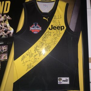 Taylor Made Memorabilia is proud to offer the 2017 Premiers Team Signed Guernsey. Personally signed by all 22 Richmond Tigers Premiership players and officially licensed and endorsed by the AFL and AFLPA, it is a must-have for all Tigers fans and astute collectors alike.
