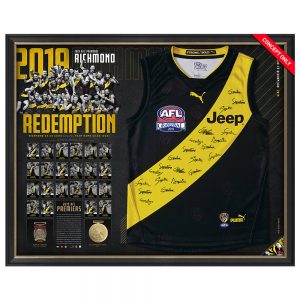 - A stunning tribute to 2019 AFL Premiers, Richmond Football ClubFeatures an officially licensed 2019 Richmond home guernsey personally signed by every single 2019 Premiership player, along with coach Damien Hardwick