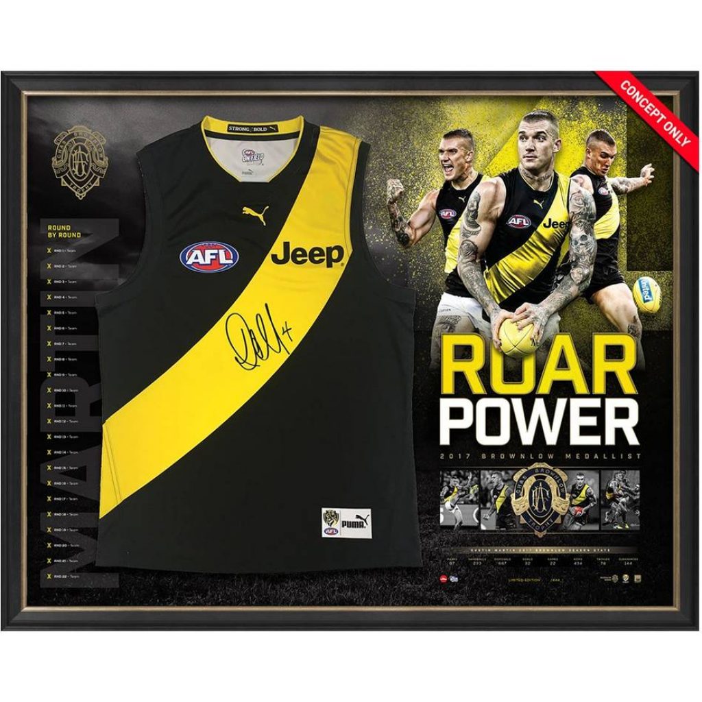- This stunning display includes an impressive oversized replica Brownlow Medal, paying homage to Martin’s incredible 2017 season