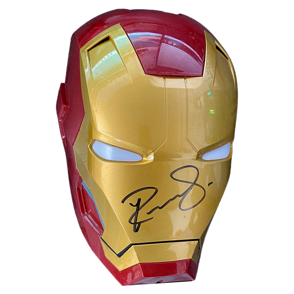 • Replica Iron Man Mask hand signed by Robert Downey Jr.