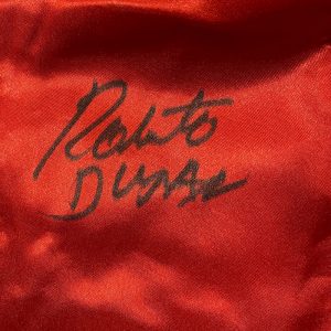 • Red & White Boxing Trunks hand signed by Roberto Duran