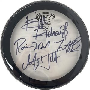 - Black/Crear Drumskin hand signed by members of Rolling Stones: Mick Jagger, Keith Richards, Charlie Watts & Ronnie Wood