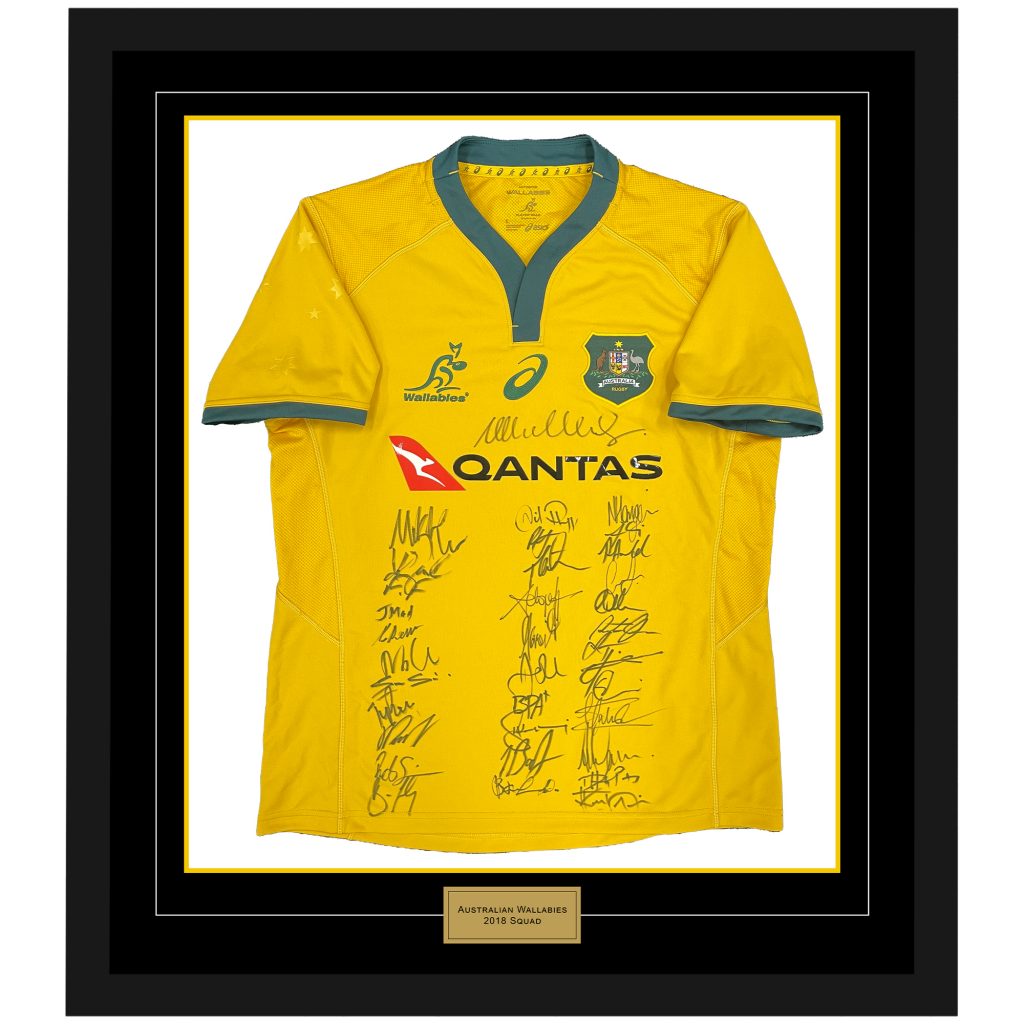 - 2018 Qantas Wallabies Jersey hand signed by every member of the 2018 squad plus coach Michael Cheika