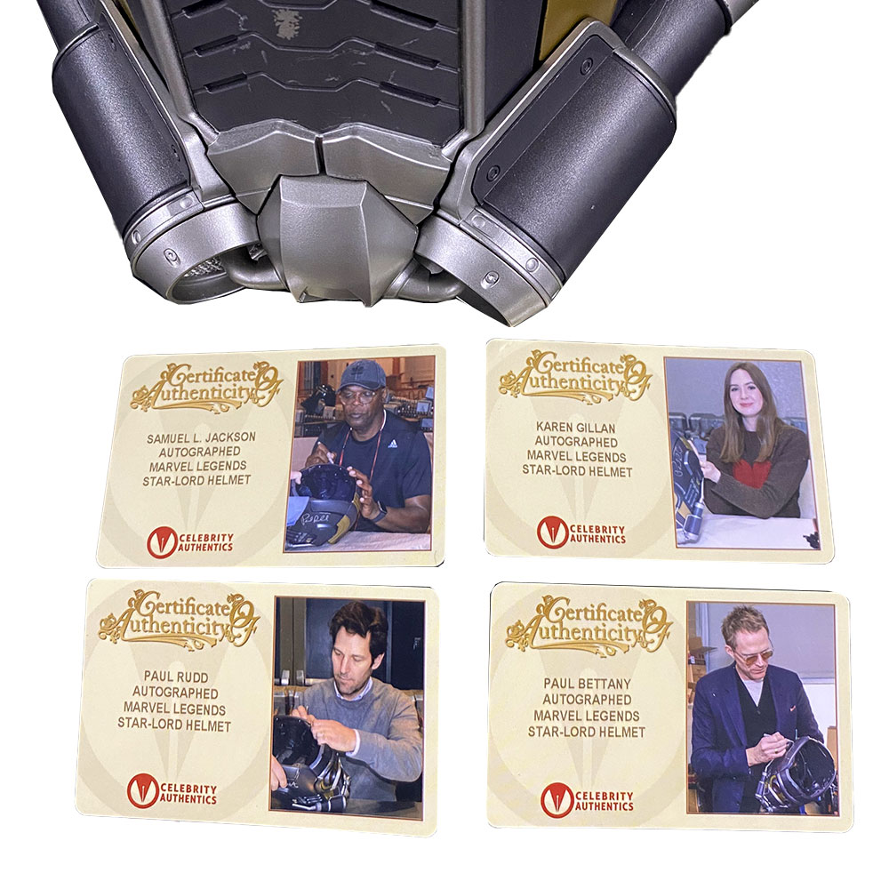 • Guardians of the Galaxy Star-Lord Prop Replica Helmet has been personally hand-signed by Avengers stars Samuel L. Jackson, Paul Rudd, Karen Gillan and Paul Bettany