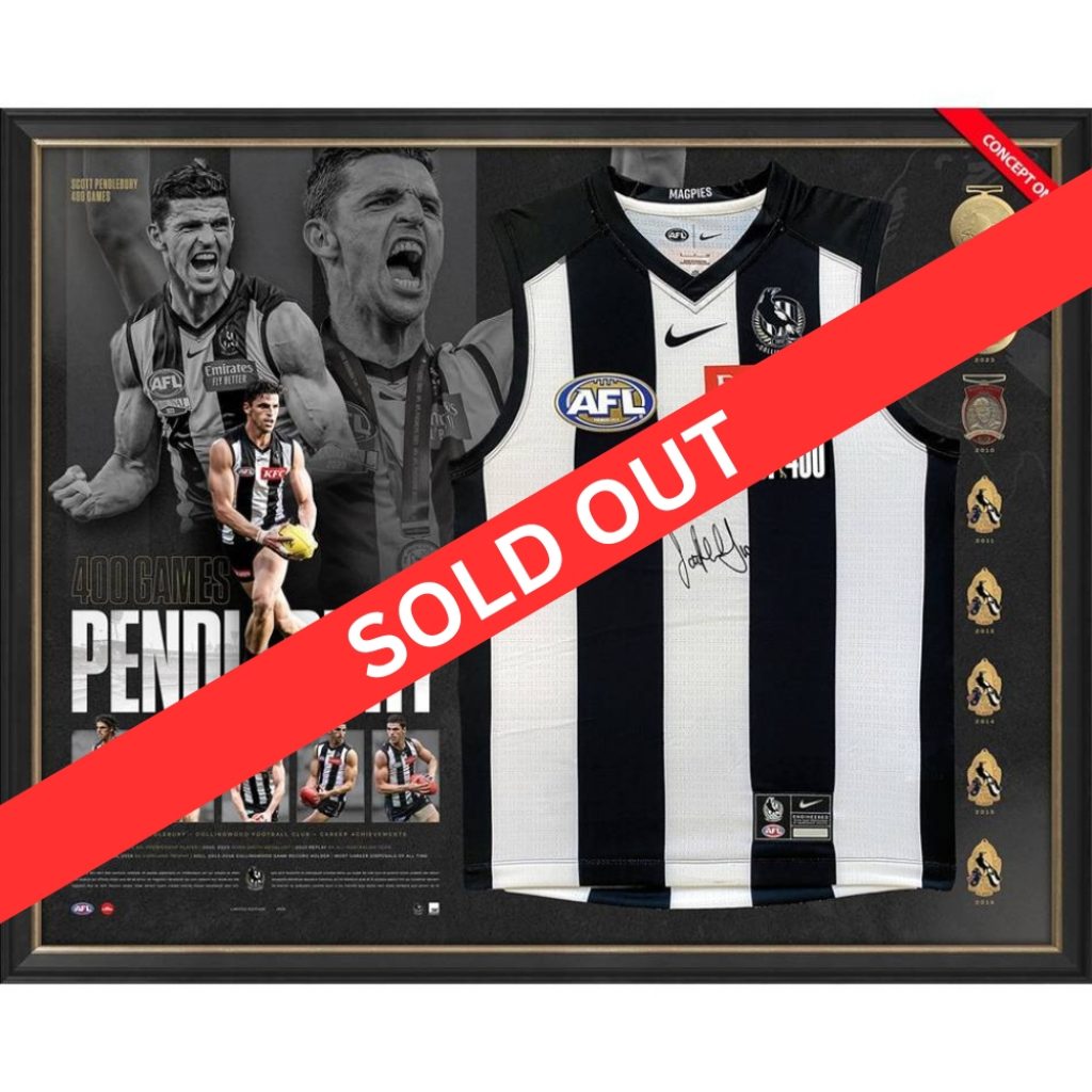 - Deluxe display features an official Collingwood 2024 Nike Home Guernsey – with gold AFL and SP400 patch – personally signed by Pendlebury