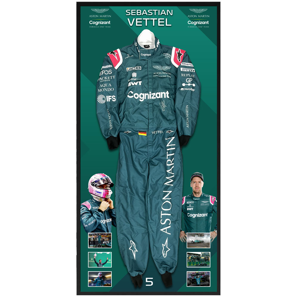 Sebastian Vettel Aston Martin F1 Team Signed & Framed Full Size Formula One Race Suit