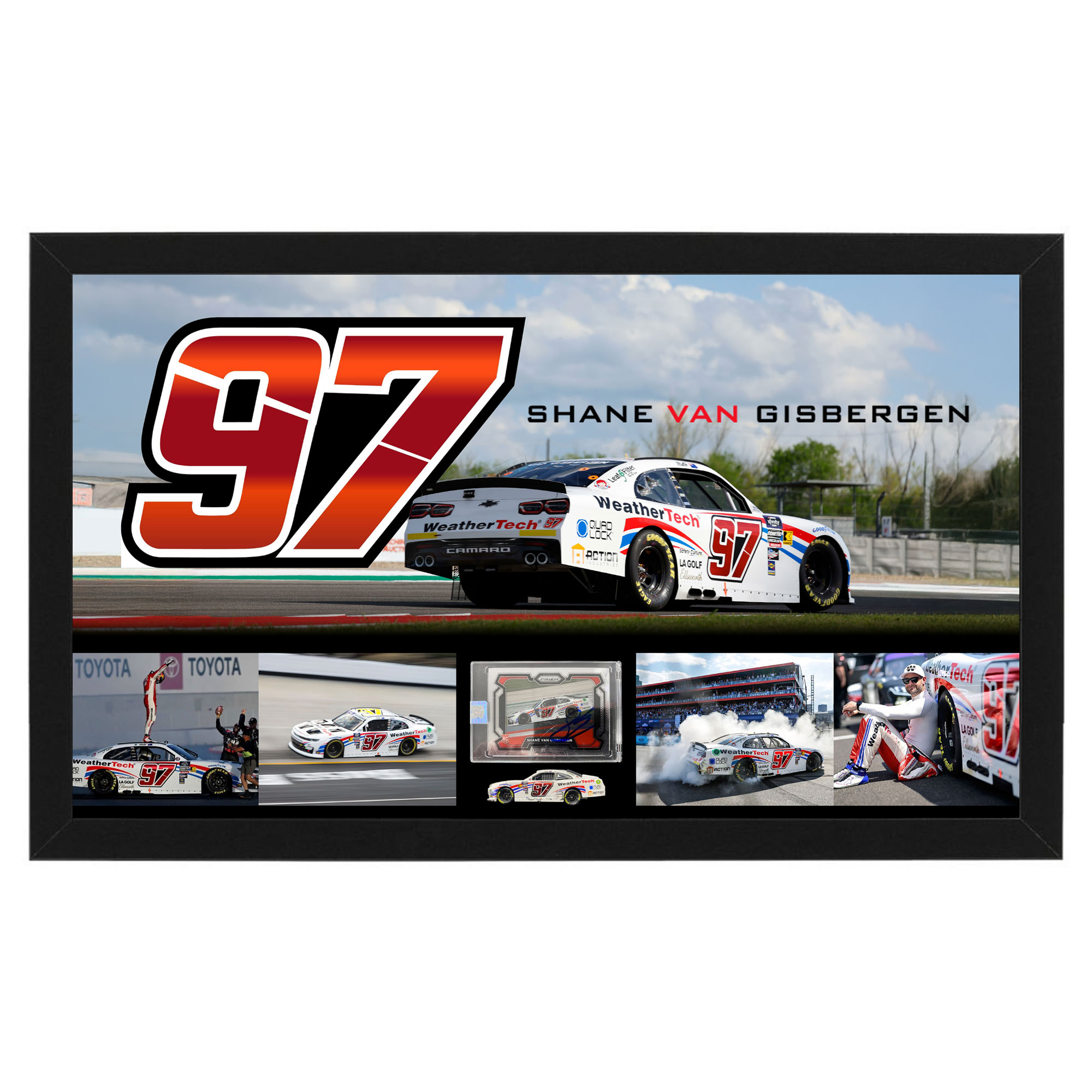 - Presented in a deluxe timber frame with custom backdrop, and a 1:64 model NACAR #97 WeatherTech Sonoma Win 2024 Camaro