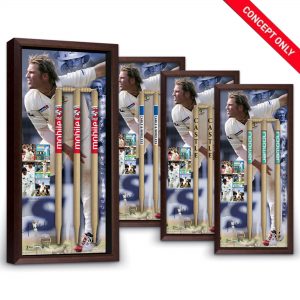 Entitled, ‘Recollections of Warne’, this landmark release is a series of 145 ShowCased Wickets, celebrating Shane Warne’s illustrious Test career – superbly presented within a stylish timber ShowCase, representing each Test match in which Shane Warne played. Personally signed and featuring a full set of wickets – each individual set of wickets has been faithfully reproduced to reflect the actual sponsor’s branding, identically matching those used in each and every one of Shane’s 145 Tests. Each Showcase will highlight Shane’s own personal recollection of that particular Test…No two are the same.
