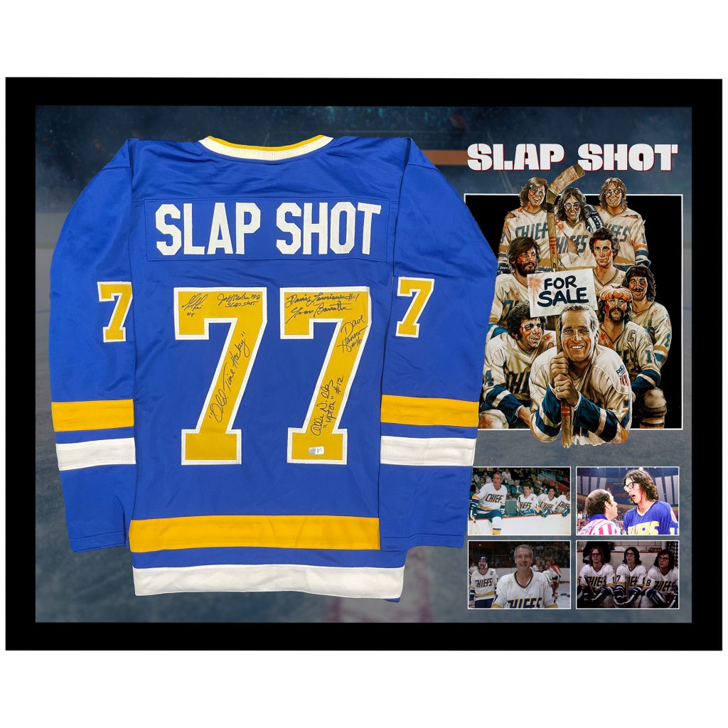 Slap Shot – Cast Signed & Framed Ice Hockey Jersey (TSE Hologram)