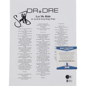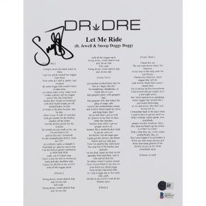 - 8.5″ x 11″ Dr Dre – Let Me Ride Lyric Sheet photograph hand signed by Snoop “Doggy” Dogg