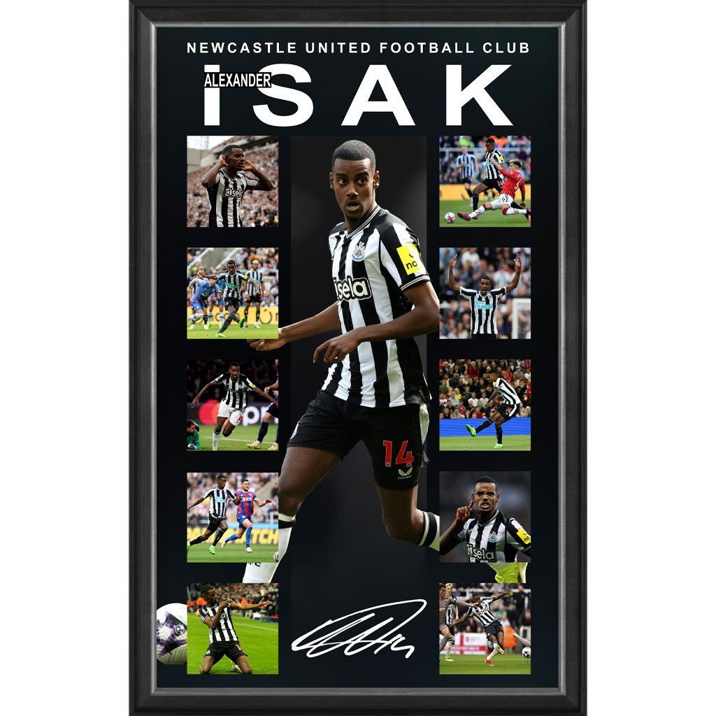 - Features images of Alexander Isak along with a facsimile signature