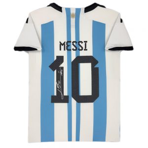 - Argentina 2022 World Cup Jersey hand signed by Argentina Superstar, Lionel Messi