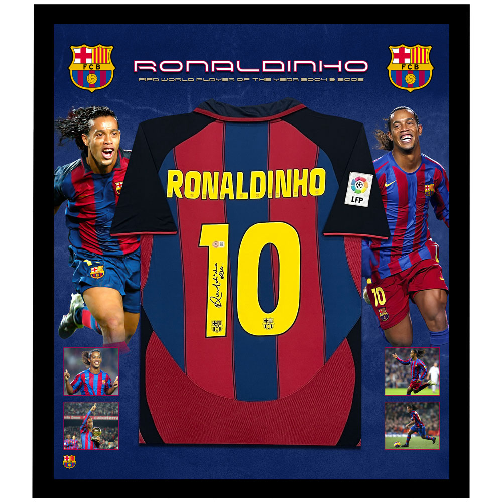 Soccer – Ronaldinho Signed & Framed FC Barcelona Jersey (Beckett)
