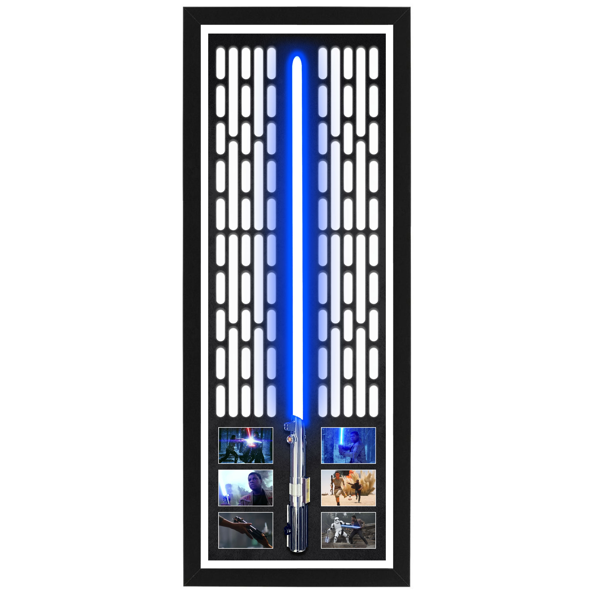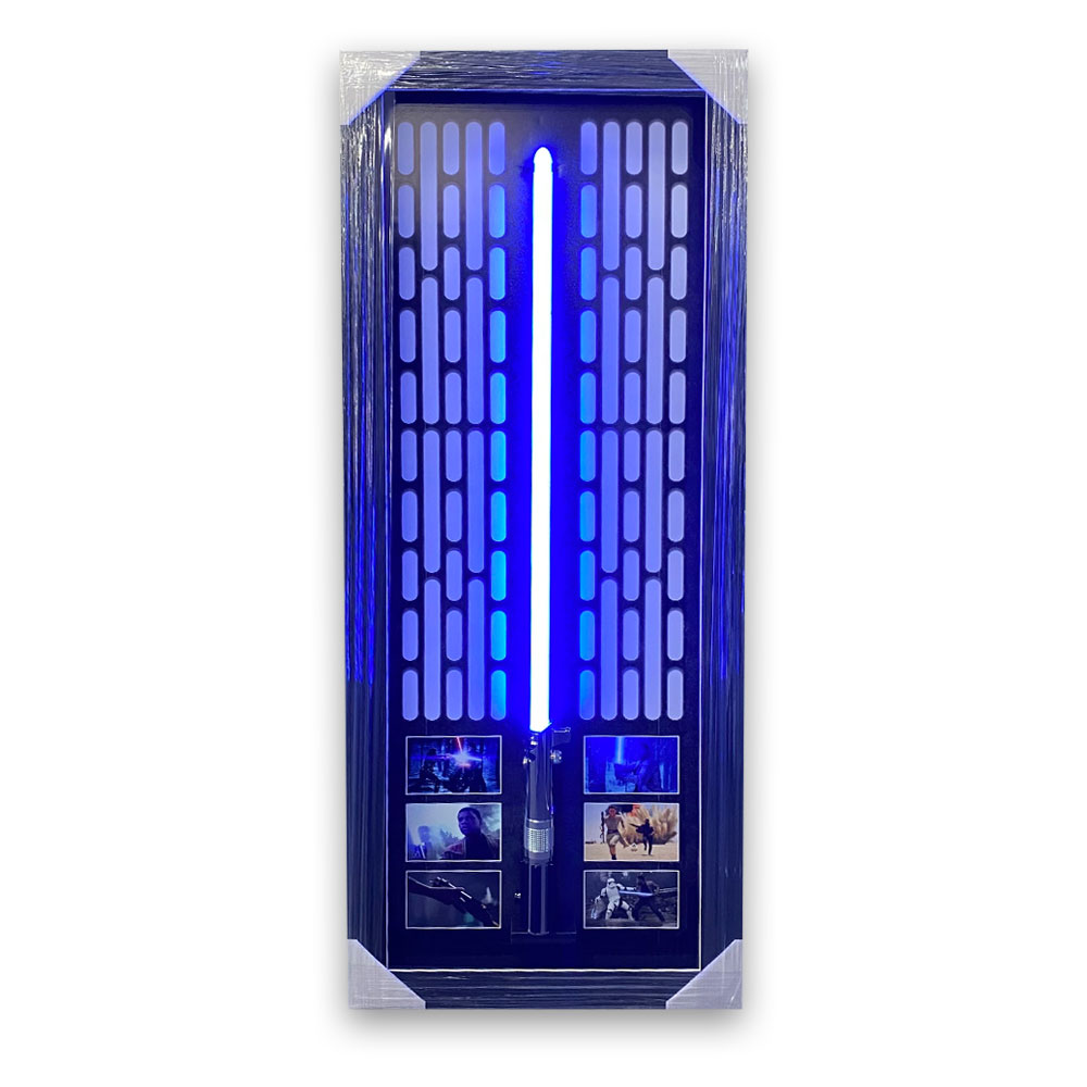• Comes unframed, with a frame option available at an additional cost (Framed option is an open display with no glass, Lightsaber prop is removable from the display)