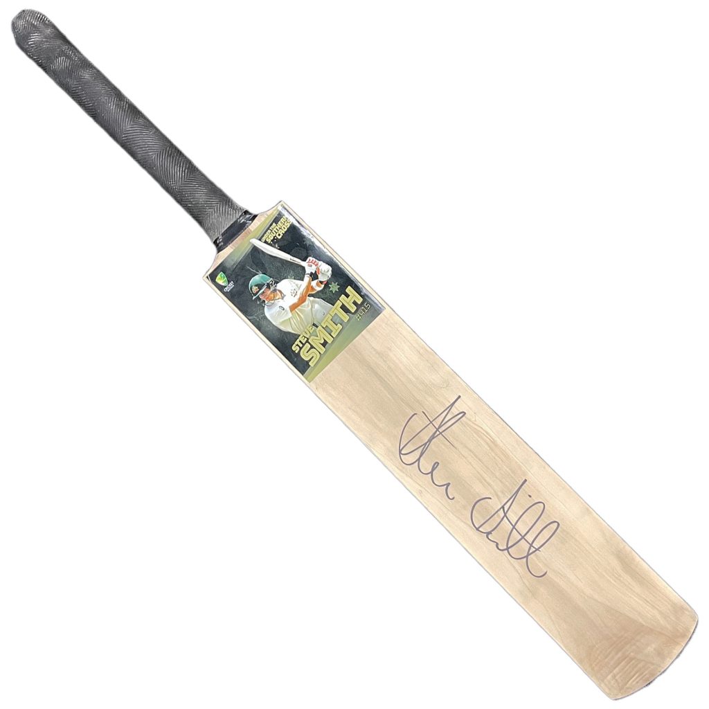 - Full Size Short Handle Cricket Bat w/ custom sticker hand signed by Steve Smith
