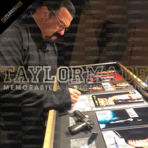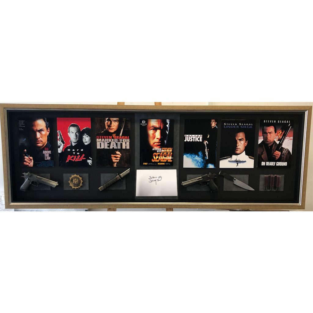 - 230 x 150mm signing card hand signed by Steven Seagal mounted onto the display (Signed by Seagal during his 2019 Australian Tour in a private signing session for Taylormade)
