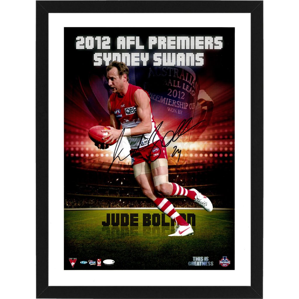 Sydney Swans – JUDE BOLTON Signed & Framed 2012 Premiers Hero Shot Print